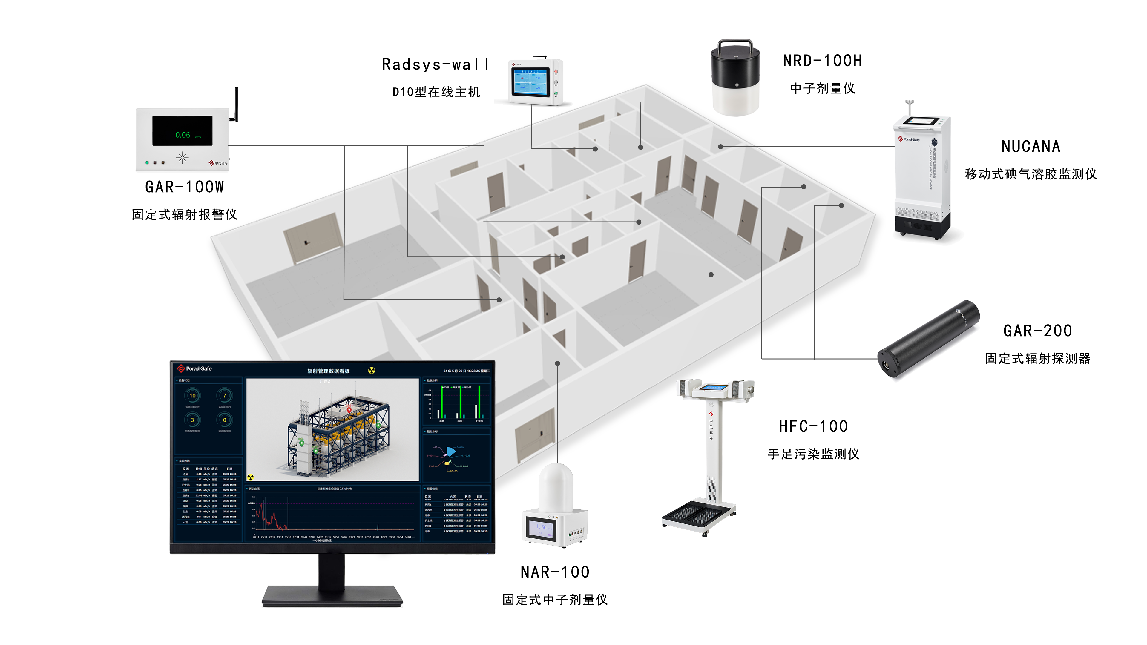 该项目包含产品有智能辐射安全管理系统,中控主机,固定式辐射报警仪,碘131自动分装仪,手足污染仪,移动式碘气溶胶监测仪,放射性活度计。通过不同区域布置在线辐射监测仪,实现多点组网在线辐射监测。通过自动分装仪,可实现碘131放射性药物远程控制自动分装,降低医护人员辐射照射危害。配置的碘气溶胶监测仪和手足污染仪,可快速监测工作人员手足放射性污染以及分装室内空气中放射性碘气溶胶污染,保障医护人员工作环境辐射安全。