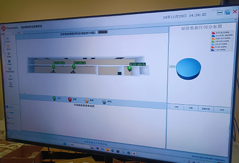 该项目包含产品有中控主机,辐射探测器,辐射安全管理软件,碘131患者体内活度测量系统,便携式辐射剂量率仪,便携式表面污染仪。通过不同区域布置在线辐射监测仪,实现多点组网在线辐射监测,实时监测环境场所辐射剂量水平。并结合辐射管理软件,实现核医学科室智能化辐射安全管理。配置碘131患者体内活度测量系统可实现甲癌患者自动完成体内碘131核素残留活度测量,全过程无需医护人员干预,自动上传测量数据,并生成检测报告。加上便携式辐射剂量率仪,表面污染仪,可全方面实时便捷的测量当前环境辐射水平,让医护人员及时采取辐射防护措施。