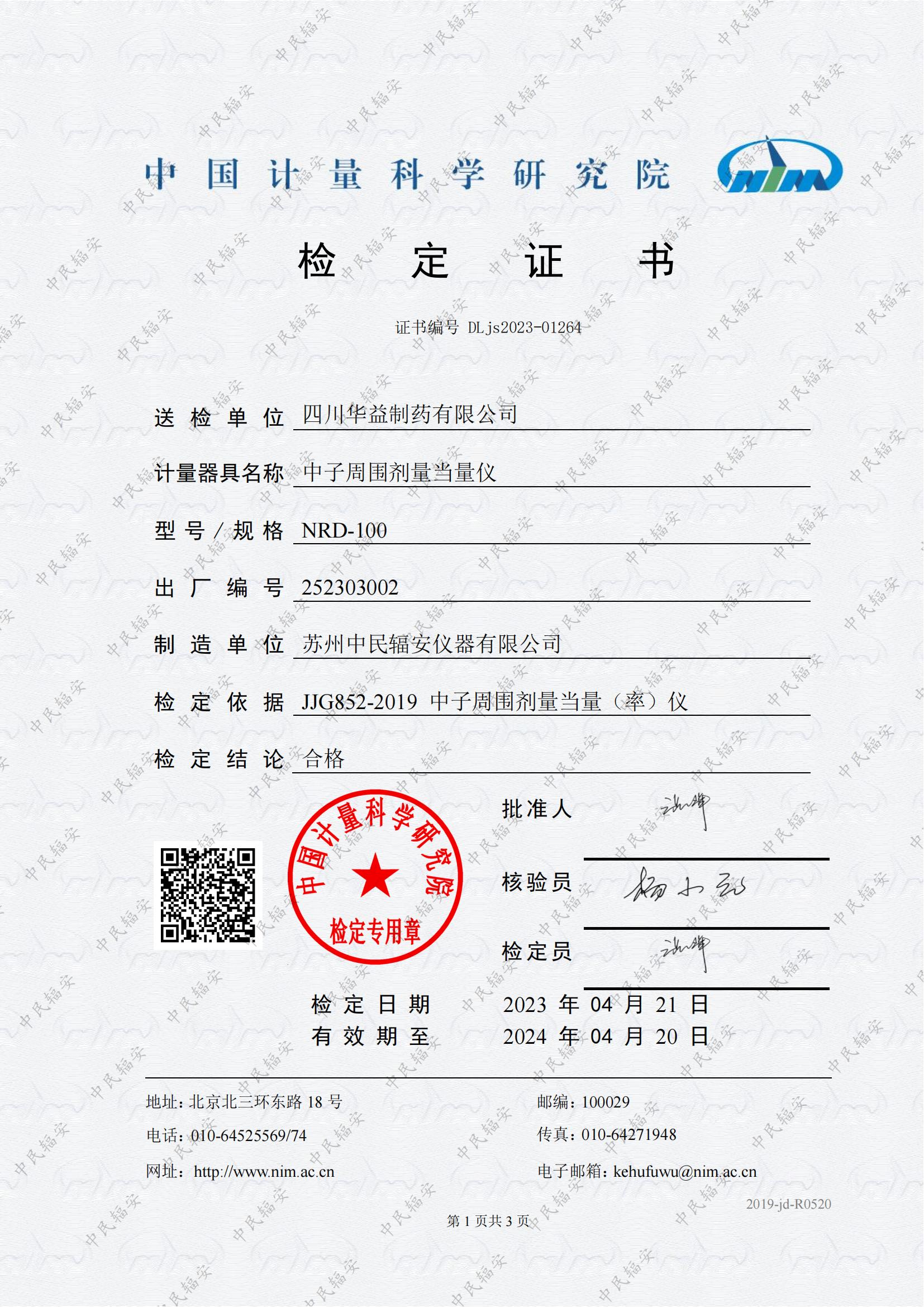 提供计量检定证书