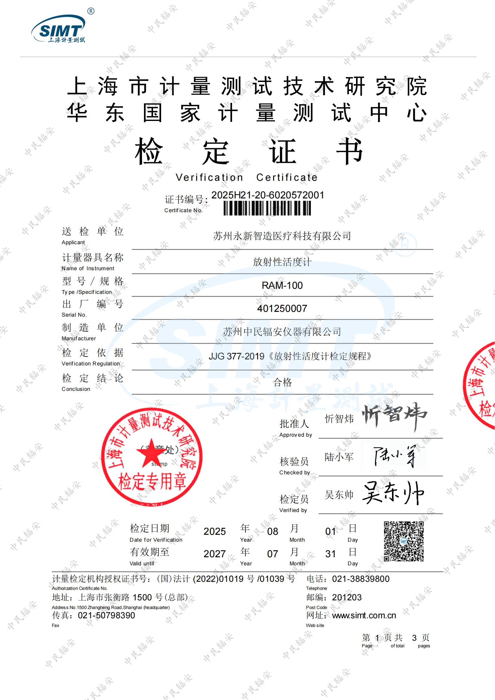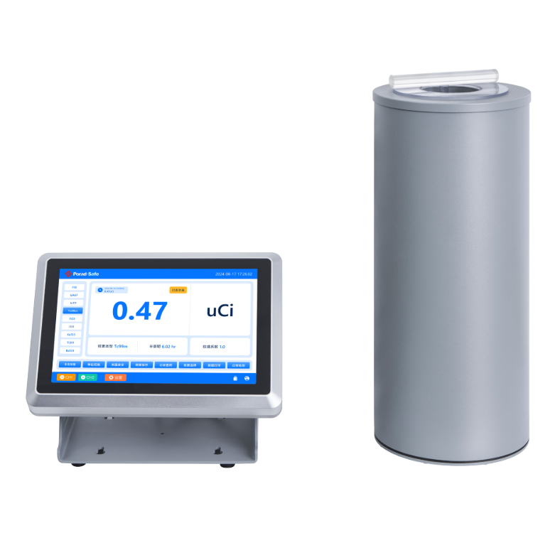 RAM-100 型放射性活度计是用于放射性核素活度精确测量的设备,由高气压铝质薄壁井型高压电离室探测器,fA弱电流放大电路和大尺寸触摸显示器构成。具有探测下限低,测量范围宽,线性度高,稳定性好,响应快速等优点,可满足常用放射性核素的活度精确测量。
