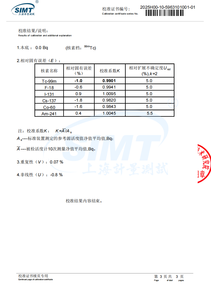 全量程内,线性好,满足核医学不同核药活度范围测量