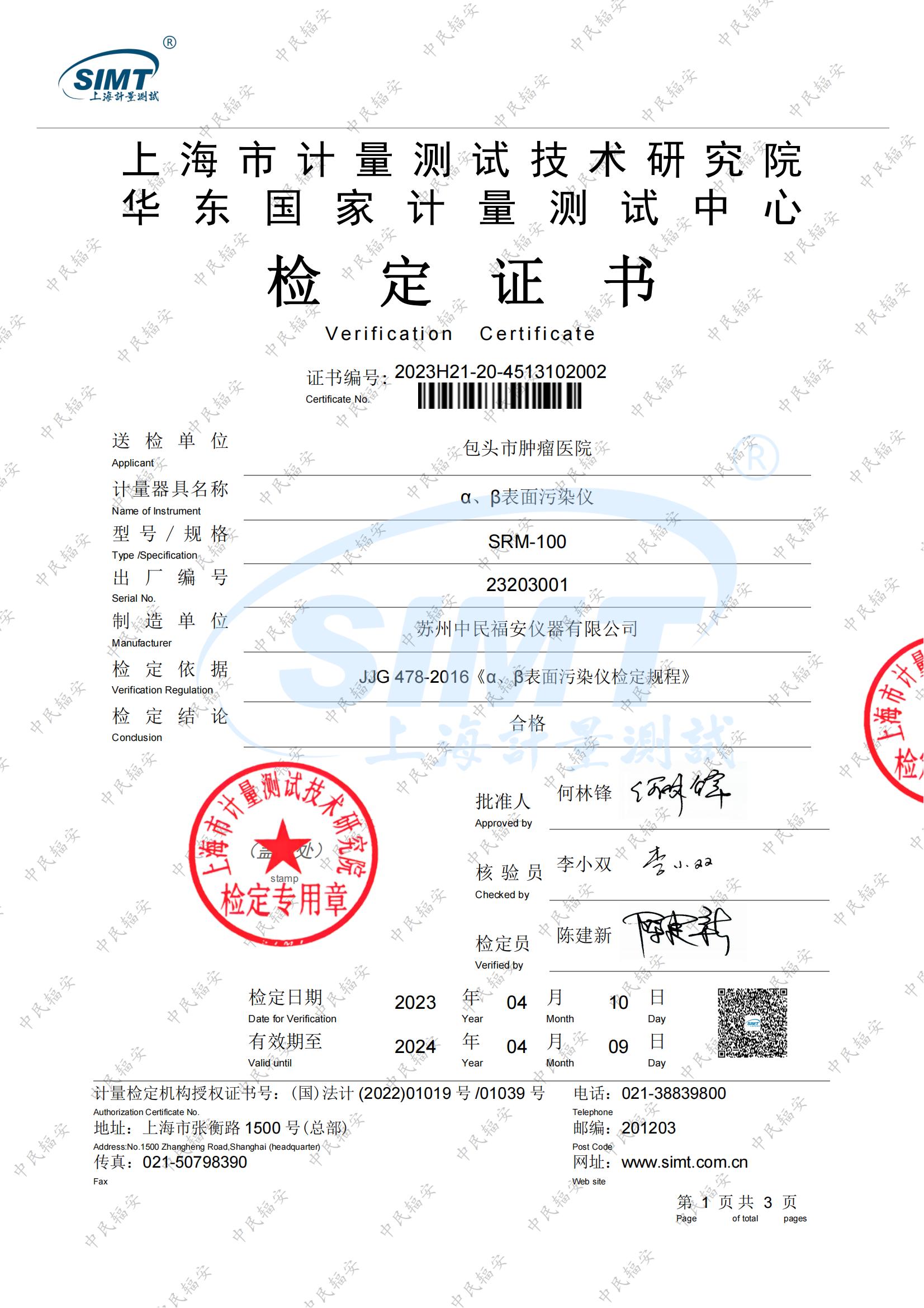 SRM-100 型表面污染仪采用进口云母窗盖革探测器,可同时测量α,β和γ射线,尤其可测量I-125等低能伽马射线,可兼顾测量辐射剂量率、射线计数率和表面污染活度测量。